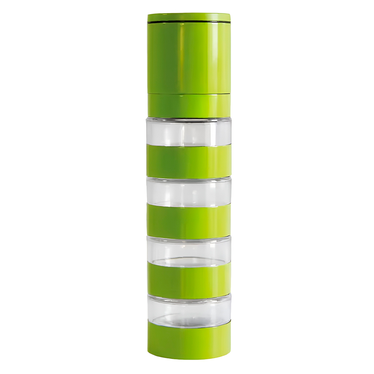 Com um design inovador em formato de torre e 4 potes empilháveis, este acessório é a solução ideal para moer especiarias na hora e manter seus temperos favoritos organizados e frescos em um só lugar.